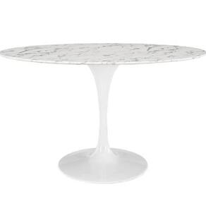 Mesa de Jantar Saarinen Redonda, Tampo 120 cm em GRANITO MÁRMORE CARRARA, com contra tampo em MDF, Base em alumínio fundido com pintura automotiva PU.
