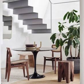 A famosa mesa Tulipa é conhecida nacional e internacionalmente devido ao nome do criador, o grande e renomado arquiteto Eero Saarinen, desenhada em 1956, a sua Base lembra o caule da flor Tulipa. O design orgânico desse Mesa faz dela umas das peças mais cobiçadas desde sua criação em 1956, fácil de combinar ela fica bem em qualquer ambiente, na cozinha, na sala, e até como mesa lateral no quarto, a peça inspira versatilidade.