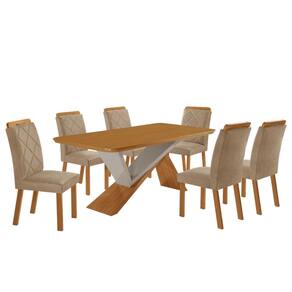 Mesa em MDF com tampo laminado e canto copo Cadeiras estofadas com máximo conforto Bordados sofisticados no encosto Ideal para ambientes elegantes e aconchegantes