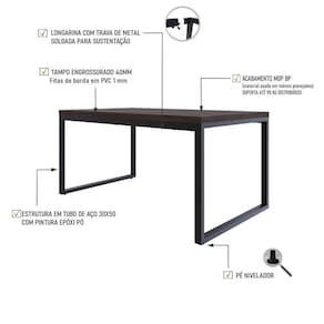 Mesa De Jantar Yon 160 X 90 X 76 Cm Terracota/ Terracota/ Sobre o ProdutoMesa de Jantar Yon 160x90x77cm YOMJ9160 çoDescrição do Produto:A mesa de jantar Yon YOMJ9160 possui dimensões generosas, combinando elegância com o design industrial. O tampo desta mesa é engrossurado em 40mm e as bordas possuem acabamento em fita de PVC de 01mm, proporcionando durabilidade e uma superfície muito resistente. Os pés são feitos em tubos de aço 30x50mm com longarinas horizontais, conferindo estabilidade, robustez e uma imponente qualidade. Sua combinação de materiais e proporções bem pensadas a tornam uma opção de escolha versátil e elegante para ambientes modernos com um design linha Yon é uma fusão elegante entre o estilo industrial e o contemporâneo. Com linhas limpas, materiais robustos e detalhes sofisticados, essa coleção é perfeita para quem busca um ambiente moderno e funcional. Os móveis desta linha oferecem uma versatilidade notável, adaptando-se a diversos ambientes e necessidades, permitindo a criação de composições únicas e personalizadas. sendo a escolha ideal para quem busca qualidade e estilo em um só Inclusos:1 Mesa de JantarMesa de Jantar Yon 160x90x77cm YOMJ9160 ço: 160 x 90 x 77 cmInformações Logísticas (Comp. X Prof. X Alt.) 168 x 103,5 x 6 cm - Peso: 38,43 KgPeso Total: 38,43 KgObservações: Não acompanha acessórios decorativos. Imagens meramente ilustrativas.Informações Técnicas / Características:- Cor do Produto: ço- Cor do Predominante: Revestido- Marca: Metalig- Modelo: YOMJ9160- Linha: Yon- Material: Mdp- Material da Estrutura / Pés: Aço- Acabamento: BP- Escala de Brilho: Fosco- Fita de Borda: Pvc - Possui Gavetas: Não - Possui Pés: 2- Pés Niveladores: Sim - Acabamento Estrutura: Epóxi-Pó- Formato: Retangular -Observações: Possui 02 Longarinas horizontais de aço.- Suporta Até (kg): 100kg- Comprimento: 160cm- Profundidade: 90cm- Altura: 77cm- Recomendações de Uso, Manutenção e Limpeza: Para a limpeza, utilize flanela seca ou pano macio levemente umedecido em água. Utilize um pano seco em seguida. Evite com produtos químicos (solventes, thinner, acetona, etc) e não utilize nenhum tipo de esponja de aço.- Necessita de Montagem: Sim / Acompanha Manual de Montagem- Complexidade da Montagem: Média: pode ser montado por mais de uma pessoa e/ou necessite de maior conhecimento para montagem.- Garantia: 01 ano Marca: Compace | Quantidade máxima de pedido: 1 | Modelo: YOMJ9160 | Necessita montagem: Sim | Quantidade de volumes: 2 | Profundidade: 90 cm | Material da estrutura: Aço | Produto: Mesa de jantar | Cômodo indicado: Cozinhas | Cor: Multicolorido | Altura: 77 | Tonalidade: Multicolorido | Coleção: Industrial | Requer Baterias: | Certificação Externa: Não aplicável | Componentes inclusos: Manual de montagem e kit acessórios | Largura: 90 | Comprimento: 160 | Peso: 36,51 | Preço de tabela: | Fabricante: Compace | do Modelo: YOMJ9160 | de Caixas: 1 | de Itens: 1 | da Peça: YOMJ9160 | Cozinhas: Cor: Terracota/