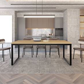 A mesa de jantar Yon YOMJ9200 possui dimensões generosas, combinando elegância com o design industrial. O tampo desta mesa é engrossado em 4cm e as bordas possuem acabamento em fita de PVC de 0,1cm,