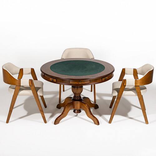 Se você procura algo versátil que compõe vários tipos de ambientes, o Kit Mesa de Jogos Redonda 140cm New Orleans com 03 Cadeiras Estofadas Suran M04 Imbuia da Lyam Decor é perfeito para sua casa. Sendo capaz de compor muito bem o ambiente, são produzidos com materiais de excelente qualidade e resistência. Possui estrutura em madeira maciça, na cor imbuia agregando elegância e praticidade ao ambiente. Você e seu lar merecem, adquira já o seu!!
