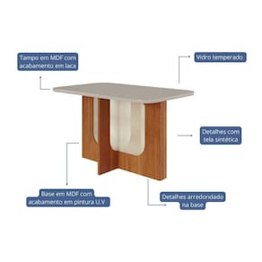 O(a) Mesa de Madeira Louise 130 com Vidro Cinamomo/Off White - Cimol é produzido em MDF na escala de brilho Semi-Brilho, e possui um grau de dificuldade de montagem: Médio.