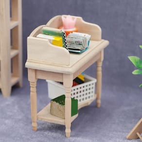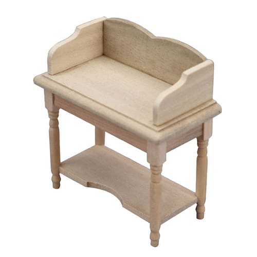 Tamanho: comprimento 8,3 cm, largura 4,2 cm, altura 8,6 cm Material: madeira Peso: 50 g Brinquedo não infantil: mantenha longe do alcance de crianças pequenas para evitar riscos de asfixia ou ferimentos causados por peças pequenas. Este produto é um modelo de brinquedo e não é para uso no mundo real. Ideal para casas de bonecas em escala 1/12, esta mesa de madeira em miniatura possui prateleiras e um design clássico para criar cenas detalhadas. Feito de madeira durável, perfeito para adicionar um visual rústico ou inacabado à sua coleção em miniatura. Ótimo para aprimorar o fingimento, a organização e adicionar detalhes realistas à sua mini casa dos sonhos.