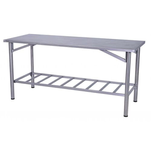 A bancada de manipulação 70X70CM possui um tampo feito de aço inoxidável 304 com reforço e espessura de 0,80mm, garantindo maior durabilidade ao produto. Sua estrutura é feita de tubo 2", proporcionando mais resistência e estabilidade à mesa. Além disso, possui um sistema de montagem por encaixe tipo cunha, paneleiro gradeado e pés com terminais de plástico e regulagem de altura, permitindo ajustar a mesa conforme a necessidade de uso.