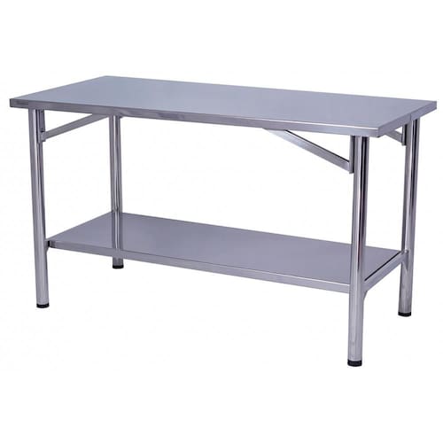 A bancada de manipulação 180X70CM possui um tampo feito de aço inoxidável 430 com reforço e espessura de 0,80mm, garantindo maior durabilidade ao produto. Sua estrutura é feita de tubo 2", proporcionando mais resistência e estabilidade à mesa. Além disso, possui um sistema de montagem por encaixe tipo cunha, paneleiro liso e pés com terminais de plástico e regulagem de altura, permitindo ajustar a mesa conforme a necessidade de uso.