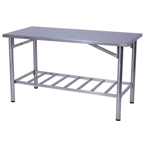A bancada de manipulação 190X70CM possui um tampo feito de aço inoxidável 430 com reforço e espessura de 0,80mm, garantindo maior durabilidade ao produto. Sua estrutura é feita de tubo 2", proporcionando mais resistência e estabilidade à mesa. Além disso, possui um sistema de montagem por encaixe tipo cunha, paneleiro gradeado e pés com terminais de plástico e regulagem de altura, permitindo ajustar a mesa conforme a necessidade de uso.