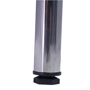 encaixe tipo cunha e pés com terminas de plástico e regulagem de altura, podendo ser ajustado conforme a necessidade de uso da mesa de serviço inox.