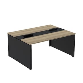 Mesa de Plataforma Dupla para 2 Pessoas Corporativa 120x120/2p Noce Naturalle/Preto - Marrom