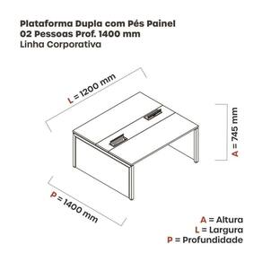 Mesa de Plataforma Dupla para 2 Pessoas Corporativa 120x140/2p Grafito/Branco - Cinza