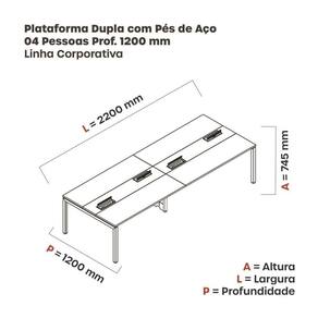 Mesa de Plataforma dupla para 4 Pessoas Corporativa 110X120/4P PDC11/12/4P Walnut/Branco - Marrom