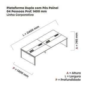 Mesa corporativa para 4 lugares com pé painel adequado para ambientes de coworking. Esse complemento é projetado para ser utilizado em conjunto com outras mesas, permitindo aumentar o número de lugares disponíveis. Ela combina funcionalidade e estilo, proporcionando um espaço colaborativo confortável para trabalhar. Você pode adicionar essa mesa a outras unidades para criar um ambiente expansível conforme necessário. Acompanha Manual de Instalação: Sim Ambiente Principal: Escritório Complexidade da Montagem: Baixa: pode ser montado por uma pessoa sozinha Cor: Preto Cor da Base: Preto Cor do Produto: Preto Cor do Tampo: Preto Cor Flex: Não Cor Interna: Preto Dobrável: Não Escala de Brilho: Semi-Fosco Espessura do Tampo: 25 mm Formato: Retangular Itens Inclusos: 1 mesa plataforma dupla 2 lugares Linha ou Coleção: Linha Corporativa Manual de Montagem e Instalação: https://product-hub-prd.madeiramadeira.com.br/900421/documents/527bca9c-b014-480f-8e14-4f8070d4554120Dupla200420PC3A920Painel.pdf Material da Estrutura: Aço Material do Tampo: MDP Material dos Pés: Polipropileno Material Principal: MDP Montagem Flex: Não Necessita Montagem: Sim Origem do Produto: Nacional Peso: 86,686 kg Possui Painel: Não Possui Passa Cabos: Não Possui Porta Objetos: Não Possui Portas: Não Possui Prateleiras: Não Possui suporte para CPU: Não Possui Suporte para Teclado: Não Possui Vidro: Não Recomendações de Uso, Manutenção e Limpeza: Utilize pano úmido com para limpeza Sapatas Niveladoras: Sim Sistema de Montagem: Parafuso Suporta Até (kg): 30 kg