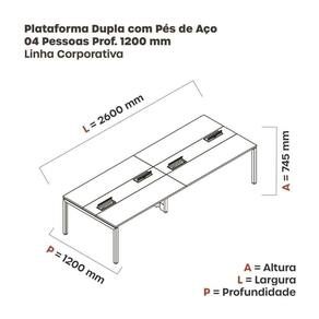 Mesa corporativa para 4 lugares com pé de aço adequado para ambientes de coworking. Esse complemento é projetado para ser utilizado em conjunto com outras mesas, permitindo aumentar o número de lugares disponíveis. Ela combina funcionalidade e estilo, proporcionando um espaço colaborativo confortável para trabalhar. Você pode adicionar essa mesa a outras unidades para criar um ambiente expansível conforme necessário. Acompanha Manual de Instalação: Sim Ambiente Principal: Escritório Complexidade da Montagem: Baixa: pode ser montado por uma pessoa sozinha Cor: Noce Naturalle/Preto Cor da Base: Preto Cor do Produto: Noce Naturalle/Preto Cor do Tampo: Marrom Cor Flex: Não Cor Interna: Noce Naturalle/Preto Dobrável: Não Escala de Brilho: Semi-Fosco Espessura do Tampo: 25 Formato: Retangular Itens Inclusos: 1 Mesa Plataforma Dupla 4 lugares Linha ou Coleção: Linha Corporativa Manual de Montagem e Instalação: https://cdn2.madeiramadeira.com.br/prd/pandin/1710871-Mesa%20Plataforma%20Dupla%2004%20P%C3%A9%20Tubular.pdf Material da Estrutura: Aço Material do Tampo: MDP Material dos Pés: Polipropileno Material Principal: MDP Montagem Flex: Não Necessita Montagem: Sim Origem do Produto: Nacional Peso: 82.708 Possui Painel: Não Possui Passa Cabos: Não Possui Porta Objetos: Não Possui Portas: Não Possui Prateleiras: Não Possui suporte para CPU: Não Possui Suporte para Teclado: Não Possui Vidro: Não Recomendações de Uso, Manutenção e Limpeza: Utilize pano úmido com para limpeza Sapatas Niveladoras: Sim Sistema de Montagem: Parafuso Suporta Até (kg): 30