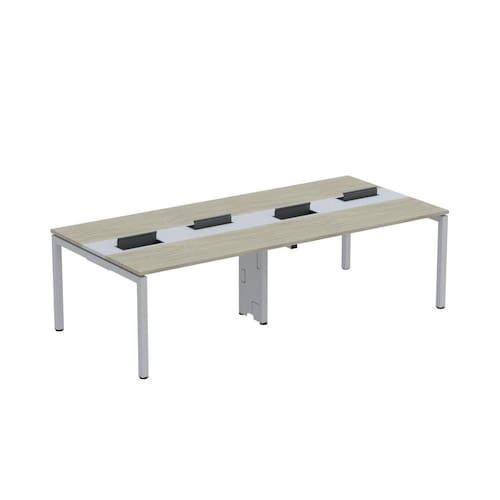Mesa corporativa para 4 lugares com pé de aço adequado para ambientes de coworking. Esse complemento é projetado para ser utilizado em conjunto com outras mesas, permitindo aumentar o número de lugares disponíveis. Ela combina funcionalidade e estilo, proporcionando um espaço colaborativo confortável para trabalhar. Você pode adicionar essa mesa a outras unidades para criar um ambiente expansível conforme necessário.