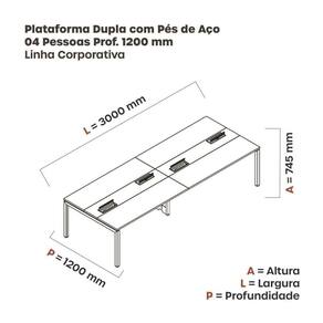 Mesa de Plataforma Dupla para 4 Pessoas Corporativa 150X120/4P PDC15/12/4P Walnut/Preto - Marrom