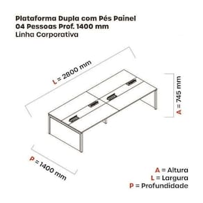 Mesa corporativa para 4 lugares com pé painel adequado para ambientes de coworking. Esse complemento é projetado para ser utilizado em conjunto com outras mesas, permitindo aumentar o número de lugares disponíveis. Ela combina funcionalidade e estilo, proporcionando um espaço colaborativo confortável para trabalhar. Você pode adicionar essa mesa a outras unidades para criar um ambiente expansível conforme necessário.