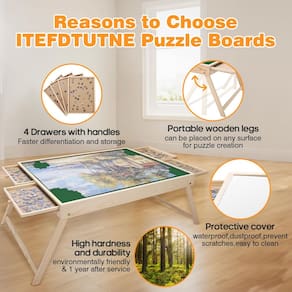 Placa de quebra-cabeça com pernas dobráveis: nosso tabuleiro de quebra-cabeça com pernas dobráveis melhora muito a conveniência dos quebra-cabeças, permitindo que você crie belos quebra-cabeças de forma fácil e eficiente. O tabuleiro de quebra-cabeça com 4 gavetas é projetado para montagem e armazenamento e pode armazenar até 1500 peças. Guarde seu progresso quando quiser fazer uma pausa e feche a tampa translúcida para proteger contra poeira, água e animais de estimação. - Placa de quebra-cabeça com pernas dobráveis: nosso tabuleiro de quebra-cabeça com pernas dobráveis melhora muito a conveniência dos quebra-cabeças, permitindo que você crie belos quebra-cabeças de forma fácil e eficiente. O tabuleiro de quebra-cabeça com 4 gavetas é projetado para montagem e armazenamento e pode armazenar até 1500 peças. Guarde seu progresso quando quiser fazer uma pausa e feche a tampa translúcida para proteger contra poeira, água e animais de estimação. - Bandeja de bagagem de alta qualidade e suave: a mesa de quebra-cabeça de 1500 peças usa materiais de alta qualidade para tornar o trabalho suave e resistente, permitindo que as peças do quebra-cabeça deslizem no lugar com facilidade e segurança. Certifique-se de que o seu tabuleiro de quebra-cabeça não se deforma ou desmorone após um longo tempo de uso. - MESA DE JUGGLE DE QUALIDADE PREMIUM: as placas de quebra-cabeça são feitas de madeira de lei sustentável de alta qualidade, que suportam mais carga e mais qualidade do que as placas de quebra-cabeça de plástico, o que as torna um investimento simples e que vale a pena. O trabalho suave de 86 x 66 cm é grande o suficiente para armazenar a maioria das 1.500 peças. - 4 gavetas e 1 tampa: as 4 gavetas são grandes o suficiente para você classificar os quebra-cabeças por cor, tema ou borda. Cada gaveta foi especialmente projetada com uma alça para garantir que todas as gavetas sejam fáceis de abrir quando em uso, evitando que os quebra-cabeças se percam. A tampa translúcida incluída pode conter sua obra-prima contra poeira, água e danos ao animal de estimação. - Presentes ideais para amantes de quebra-cabeças: nossa mesa de quebra-cabeça é o presente de aniversário ou feriado para adolescentes, idosos ou qualquer pessoa que ame quebra-cabeças. Coloque o tabuleiro do quebra-cabeça em qualquer lugar liso e divirta-se.