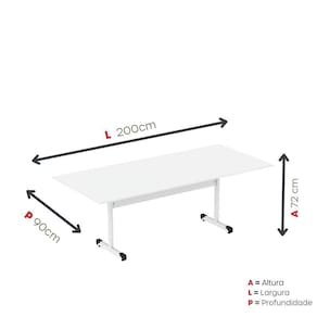 Com 200 cm de largura, a mesa oferece espaço confortável para acomodar diversas pessoas simultaneamente, sendo ideal para reuniões corporativas, apresentações e trabalhos em equipe.