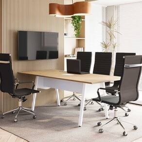 A Mesa de Reunião F5 Office é moderna e funcional, acomoda até 8 pessoas com conforto. Possui caixa de tomadas embutida no tampo, que facilita a conexão de notebooks, projetores e outros dispositivos. Pode ser usada em escritórios e espaços colaborativos, combinando com ambientes profissionais e contemporâneos.
