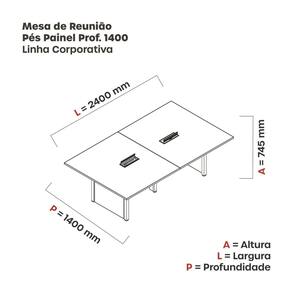 Mesa de Reunião 2400x1400 Mrcpb2414pp Preto/Grafito