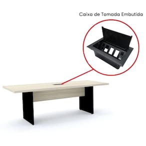 Para oferecer a sensação de bem-estar e conforto nas suas reuniões apresentamos a você a mesa de reunião pé painel com caixa de tomada PE25 em MDP, a peça ideal para seu escritório.