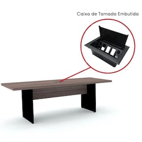 Mesa De Reunião Com Caixa De Tomada Retangular 200 X 90 Cm Pé Tubular Pe25 Em Mdp Walnut Base Preta Para oferecer a sensação de bem-estar e conforto nas suas reuniões apresentamos a você a mesa de reunião pé tubular com caixa para tomada PE25 em MDP 200 x 90 cm, a peça ideal para seu escritório. Criada especialmente para trazer conforto as pessoas que estarão participando de uma reunião ou de um bate papo no dia a dia do mundo corporativo.