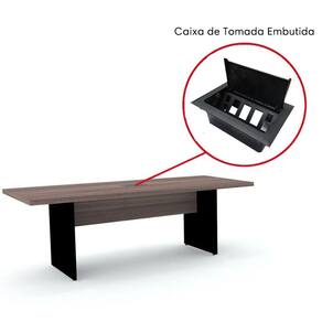 Para oferecer a sensação de bem-estar e conforto nas suas reuniões apresentamos a você a mesa de reunião pé painel com caixa de tomada PE40 em MDP 200 x 90 cm base preta, a peça ideal para seu escritório.