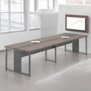 Caixas de tomodas de energia e USB acima do tampo 40mm, compartilhamento central abaixo do tampo para conexões e passagem de fios e cabos de energia. Pés em aço 50x30 e contém uma linha no meio na cor Preto.