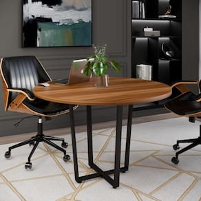 Conforto para Reuniões: Formato redondo que facilita a comunicação entre os participantes.
