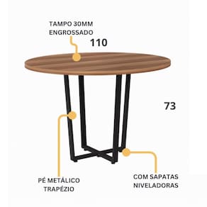 Dimensões: 110 cm (Diâmetro) x 73 cm (Altura).