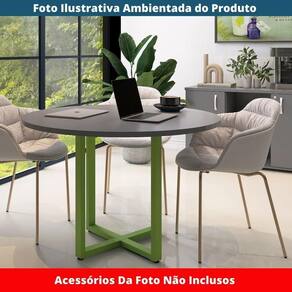 Mesa De Reunião Redonda P25 Pandin 110 Cm (largura) Tampo Mdp Grafito Pé Aço Tubular Verde Mirô