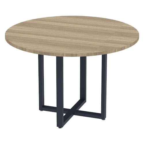 Mesa De Reunião Redonda P25 Pandin 110 Cm (largura) Tampo Mdp Noce Naturalle Pé Aço Tubular Grafito
