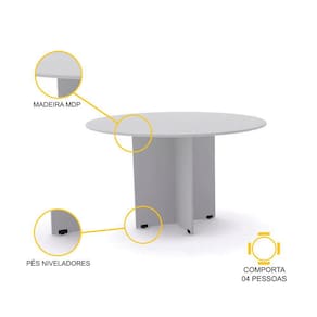 - Mesa de reunião redonda confeccionada em madeira MDP.