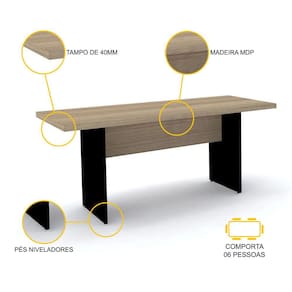 Uma mesa de reunião que acomoda até 6 pessoas, em modelo, textura e tom sóbrios, que vão bem com qualquer decoração corporativa. Esta grande mesa retangular tem tampo em madeira cor natural e pés pretos, com tudo o que é essencial para uma reunião confortável e memorável. Ideal para salas de reunião mais informais, por não contar com caixa para cabos, esta mesa é boa para reuniões focadas, entrevistas, brainstorms e decisões em equipe. Esta é uma peça com a qualidade da linha PE40 da marca Pandin, conhecida por seus móveis de escritório de design clássico e sofisticado que unem beleza, funcionalidade e estilo ao melhor custo-benefício do mercado. Para que seu projeto fique completo, consulte nossa loja e encontre as outras opções de mesas para escritório, mesas modulares e mesas com gavetas desta linha. Confira também os arquivos, estantes, gaveteiros e armários que complementam sua escolha.