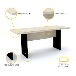 Uma mesa de reunião que acomoda até 6 pessoas, em modelo, textura e tom sóbrios, que vão bem com qualquer decoração corporativa. Esta grande mesa retangular tem tampo em madeira clara e pés pretos, com tudo o que é essencial para uma reunião confortável e memorável. Ideal para salas de reunião mais informais, por não contar com caixa para cabos, esta mesa é boa para reuniões focadas, entrevistas, brainstorms e decisões em equipe. Esta é uma peça com a qualidade da linha PE40 da marca Pandin, conhecida por seus móveis de escritório de design clássico e sofisticado que unem beleza, funcionalidade e estilo ao melhor custo-benefício do mercado. Para que seu projeto fique completo, consulte nossa loja e encontre as outras opções de mesas para escritório, mesas modulares e mesas com gavetas desta linha. Confira também os arquivos, estantes, gaveteiros e armários que complementam sua escolha.