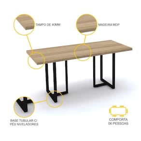 A sua apresentação de resultados terá a melhor companhia: essa mesa de reunião retangular com tampo de madeira MDP em tom natural e pés tubulares! Espaçosa e versátil, essa mesa é um móvel que fala por si só e vai tornar as reuniões do seu negócio ainda mais produtivas. Além de ser funcional, porque conta com passagem para fios em seus pés, ela é também elegante e está disponível em quatro cores - walnut, nogueira, imbuia e naturalle, sendo um móvel que pode ser adequado aos mais variados estilos. Essa mesa comporta até seis cadeiras e vai dar o brilho que você precisa em reuniões, apresentações e pequenas convenções. Esta é uma peça com a qualidade da linha PE40 da marca Pandin, conhecida por seus móveis de escritório de design clássico e sofisticado que unem beleza, funcionalidade e estilo ao melhor custo-benefício do mercado. Para que seu projeto de decoração fique completo, consulte nossa loja e encontre as outras opções de mesas para escritório, mesas modulares e mesas com gavetas desta linha. Confira também os arquivos, estantes, gaveteiros e armários que complementam sua escolha.