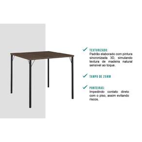 Mesa de Sala Jantar 1545 Aço c/Tampo Madeirado 87x87cm Preto/Legno - Carraro