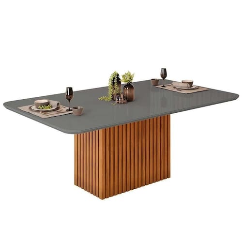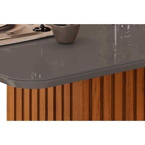 Mesa de Sala Jantar Canes c/Tampo Madeirado Vidro Curvo 200x100cm Freijo/Cinza Urbano - DJ Móveis