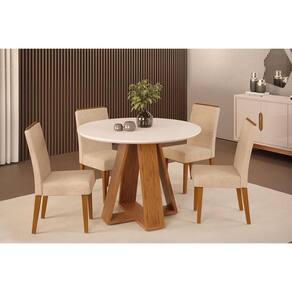 Tamanho do Tampo - Tampo 103 cm x 103 cm Espessura da Estrutura do Tampo - 25 Tipo de Formato Tampo da Mesa - Tampo Redondo Tipo das Quinas do Tampo da Mesa - Bordas Arredondadas Tipo dos Pés - Pés em MDF Quantidade de Pés - Móvel possui 4 pés