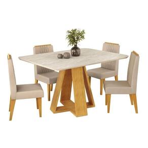 Mesa De Sala Jantar Celeste Tampo Madeirado Curvo 120x90 Freijo/quartzo - Dj Móveis