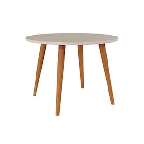Mesa de Sala Jantar Dani Madeira Maciça c/Tampo Madeirado Vidro 109cm Madeirado/Off White - Cimol