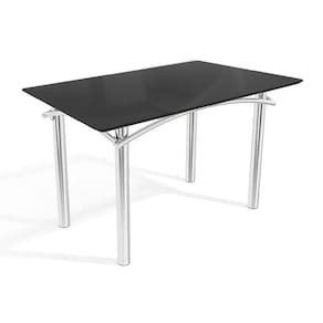 Mesa De Sala Jantar Elba Tampo Madeirado C/ Vidro 120cm Cromada/preto - Kappesberg