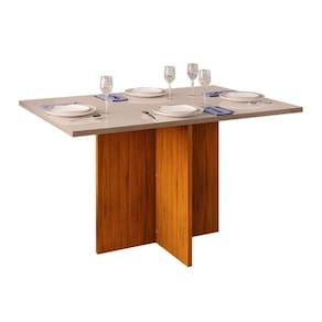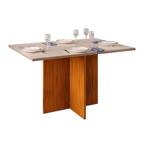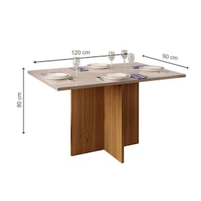 Mesa de Sala Jantar Hera c/ Tampo Madeirado c/ Vidro Reto 120x90cm Freijó/Off White - DJ Móveis