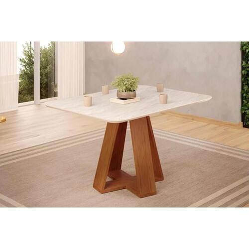 Mesa de Sala Jantar Kiara c/ Tampo Madeirado c/ Vidro Curvo 120x90cm Freijo/Quartzo - DJ Móveis