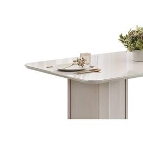 Mesa de Sala Jantar Liz c/ Tampo Madeirado c/ Vidro Curvo 180x100cm Off White/Off White - DJ Móveis Marca: DJ Móveis