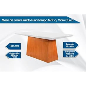 Mesa de Sala Jantar Luna c/ Tampo 180x90cm Madeirado Vidro Canto Curvo - Imbuia/Ripado 3D/Off White - Rufato Marca: Rufato
