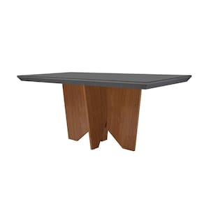 Mesa de Sala Jantar Nevada c/Tampo Madeirado Vidro Canto Reto 180x90cm Grafite/Imbuia/Vidro Grafite - Rufato