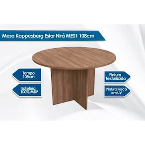 Mesa de Sala Jantar Nirá ME01 c/Tampo Madeirado 108cm - Walnut Fosco - Kappesberg