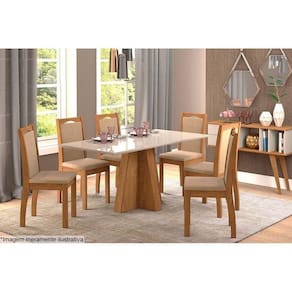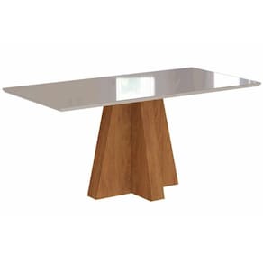 Mesa de Sala Jantar Patricia c/Tampo Madeirado Vidro 160X80cm Cinamomo/Off White - Cimol