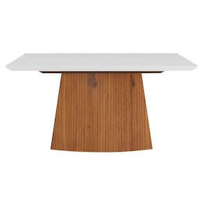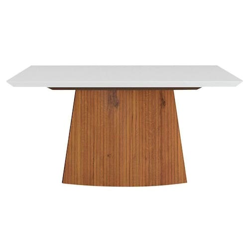 Mesa de Sala Jantar Sorela + Tampo Madeirado Vidro 160x90cm Rústico Terrara/Off White - DJ Móveis